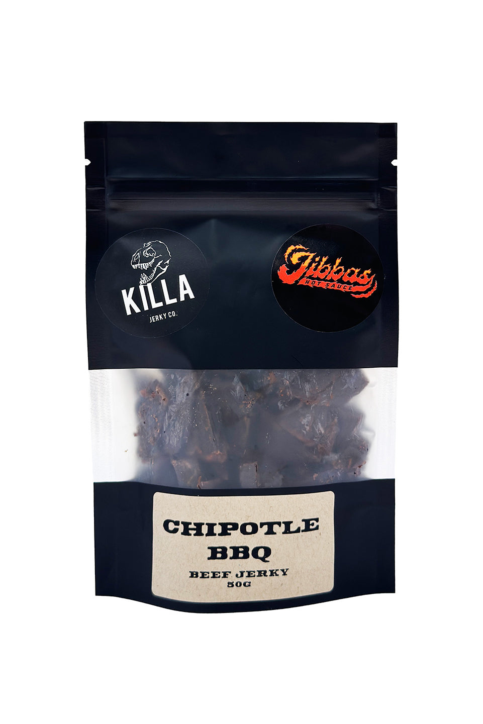Jibbas Chipotle BBQ Beef Jerky is made with Jibbas Chipotle BBQ award winning hot Sauce, 1/5 heat, beautiful Smokey flavour from the chipotle , citrusy, sweet, barbeque sauce the the tiniest bit of heat. You'll get the sweetness and citrus flavour from the orange and cane sugar then a beautiful bit of smokey chipotle.